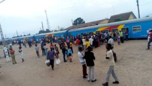 Lundi, 17 janvier 2022-Un train de luxe d’environ une dizaine de voitures lancé ce samedi 15 janvier à Kananga . Ce train rapide de luxe semi directe « NEW EXPRESS COLOMBE» réglera le tronçon Lubumbashi-kananga- Lubumbashi.
