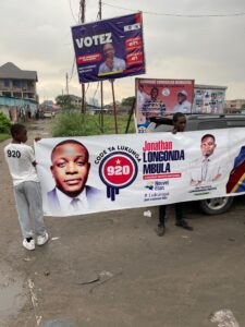 Lundi, 18 décembre 2023-Il poursuit sa campagne électorale sans désemparer. Le 920 était encore sur terrain le dimanche 17 décembre 2023. 24 heures avant la fin de la campagne électorale, Jonathan LONGONDA, parce que c’est de lui qu’il s’agit, a fait une descente au quartier Mitendi dans la commune de Mont Ngafula.