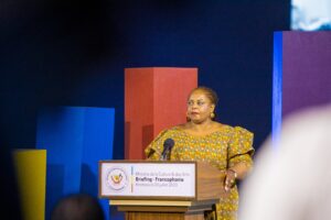 Vendredi, 21 juillet 2023-Devant le ministre de la Communication et Médias, Patrick Muyaya, le Coordonnateur National des jeux de la Francophonie, Isidore Kwandja et les professionnels des médias, la ministre de la Culture, arts et patrimoine, Catherine Furaha Katungu est revenue sur l’évolution des préparatifs des jeux dans son aspect culturel.