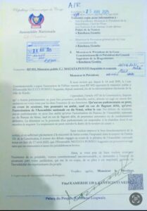 Dans une lettre signée par Vital Kamerhe, l’assemblée nationale demande à Dieudonné Kamuleta de se plier aux exigences de la loi.