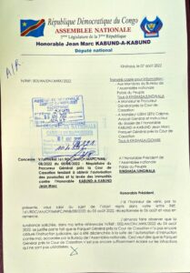 Lundi, 8 août 2022-Attendu ce lundi 8 août au bureau de l’Assemblée nationale, Jean-Marc Kabund ne se présentera pas. Il l’a clairement fait savoir à Mboso par une correspondance où il dénonce une messe noire déjà dite contre lui.