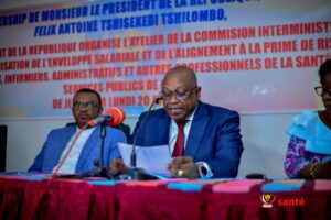 La cérémonie d’ouverture de cet atelier a été marquée par la présence des ministres de la Santé Publique, Hygiène et Prévention, Dr Jean-Jacques Mbungani Mbanda ; de celui du Budget, Aimé BOJI, des vice-ministres de la Santé Publique et de celui du budget, des délégués syndicaux du secteur de la Santé ainsi que des Secrétaires généraux de l’administration publique.