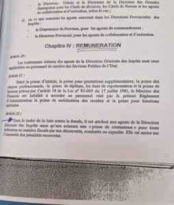 « Une ordonnance présidentielle ne peut pas être abrogée par un arrêté ministériel. C’est vraiment une entorse en droit administratif. Le contentieux minimum garantie qu’on appelle la plus value est perçu lorsqu’il y a un dépassement des assignations, donc par exemple lorsque l’année dernière au mois de juillet, la Direction Générale des Impôts avait dépassé ces assignations, donc ce dépassement là c’est la plus value que Nicolas Kazadi, l’ennemi numéro 1 du chef de l’État, Félix-Antoine Tshisekedi vient de supprimer. Cette prime a été institué sur un décret-loi de l’ordonnance du chef de l’état. Un arrêté ne peut en aucun cas supprimer un décret de l’ordonnance loi », a expliqué Denise Dusauchoy.