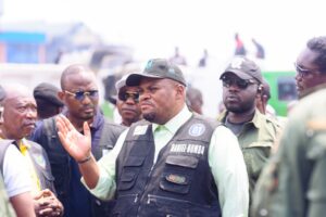 Samedi, 6 décembre 2025-Le Gouverneur de la ville de Kinshasa, Daniel Bumba, a effectué ce samedi 6 décembre 2025 une vaste tournée d’inspection afin d’évaluer l’avancement des travaux d’assainissement en cours dans plusieurs quartiers de la capitale.