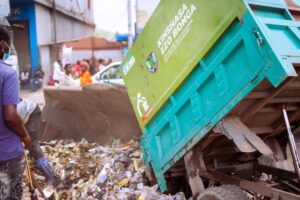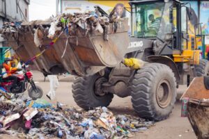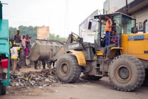 Au rond-point UPN, première étape de sa visite, le Gouverneur a supervisé les opérations d’évacuation des déchets, la suppression des marchés pirates et l’installation de nouveaux bacs-poubelle destinés à améliorer la gestion des immondices.
