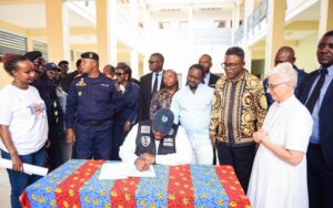 Accompagné du ministre provincial de la Santé, Patricien Gongo, du Bourgmestre de Kimbanseke, Jeancy Nganga, et du commissaire provincial de la police, Israël Kantu Bakulu, le Gouverneur a parcouru les installations du CHK sous la conduite de Claudia Nicole, responsable du centre, et Safia Ibrahim, directrice pays de l’AFD.