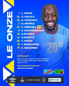 00 Mercredi, 17 Janvier 2024-Pour affronter les Chipolopolo Boys de la Zambie, Sébastien Desabre fait confiance à un groupe très habitué qui sera mené par le Capitaine Chancel Mbemba. Voici le 11 de départ Articles similaires