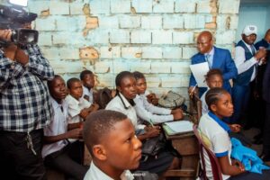 Jeudi, 13 octobre 2022-Le professeur Tony Mwaba Kazadi, Ministre de l’Enseignement Primaire, Secondaire et Technique, accompagné de Mme le Secrétaire Général a.i et de l’Inspecteur Général de l’EPST, a effectué une descente au Complexe Scolaire Tusevo, appartenant à un certain Alain Boseleka Lokondo, situé au croisement des avenues Bongadanga et Shaba, dans la commune de Kasa-Vubu, Province éducationnelle de la Funa à Kinshasa.