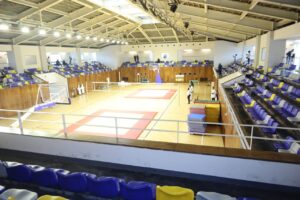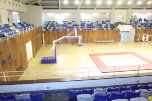Il sied de signaler que cet édifice est bâti sur une superficie de 1386 mètres carrés, selon les normes de standards internationaux. Il comprend une arène omnisports d’une capacité d’accueil de plus 112 places assises, une Salle de fitness, la Buanderie, une Salle médicale, 4 vestiaires et plusieurs autres bureaux.