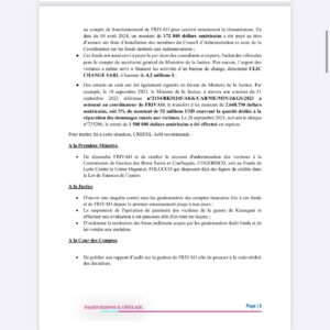 À la justice, l’organisation demande l’ouverture d’une enquête judiciaire contre tous les gestionnaires impliqués, la suspension provisoire des paiements aux victimes afin d’assainir la procédure, et la restitution des biens indûment acquis. La Cour des comptes, pour sa part, est appelée à publier son audit afin d’établir les responsabilités.